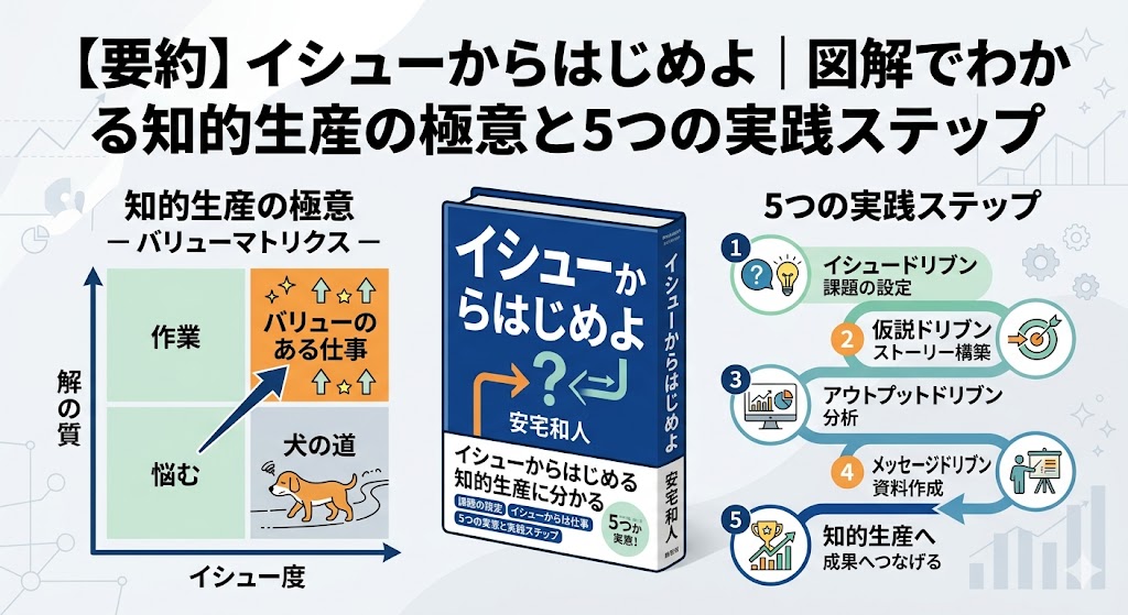 膨大な情報の中から真の課題を見つけ出し、AIという強力な道具に対して適切な指示(プロンプト)を与えるためにも、イシュードリブンの思考法は必須スキルとなりました。単なる作業効率化のテクニック本を超え、激動の時代を生き抜くための普遍的な哲学書として、本書の輝きは年々増しているように感じます。