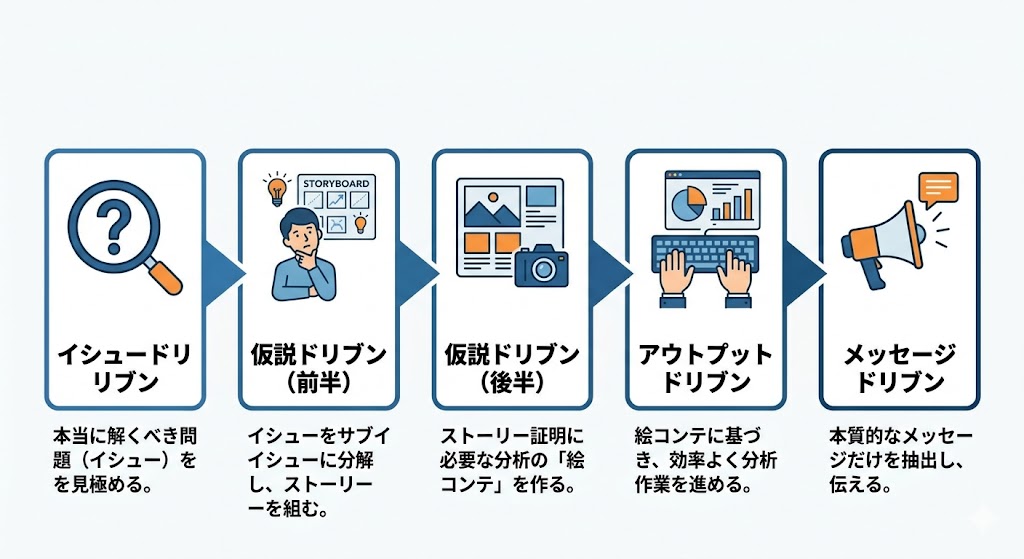 5. メッセージドリブン:分析結果から本質的なメッセージだけを抽出し、相手を動かす資料にまとめる。
